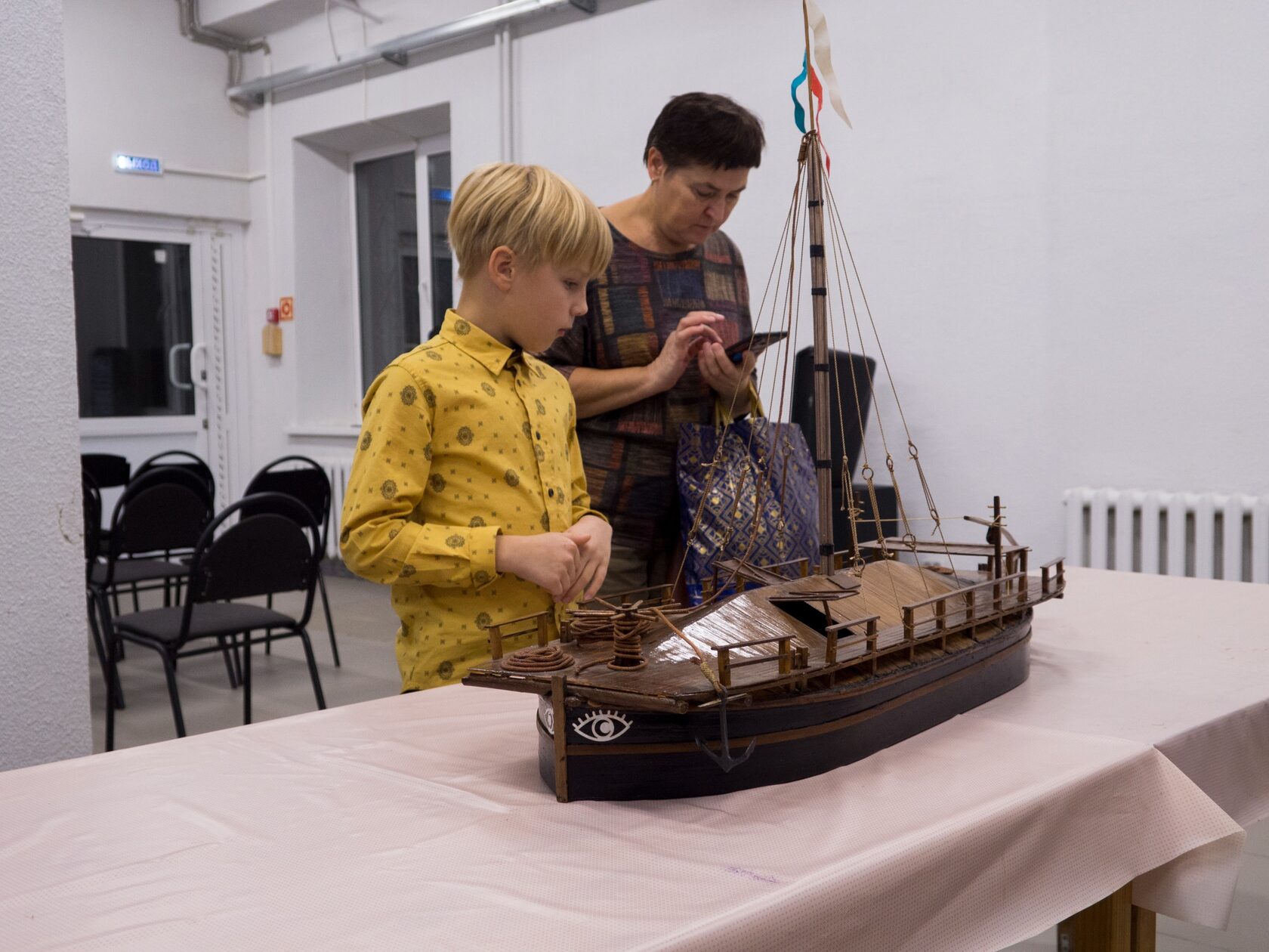 Как напоминание о прошедшей лекции в стенах археогического центра остался макет волжской барки, созданный Борисом Амурхановичем.